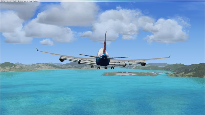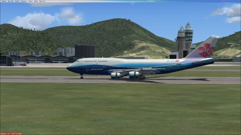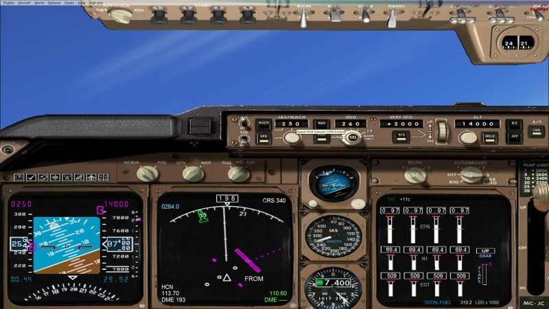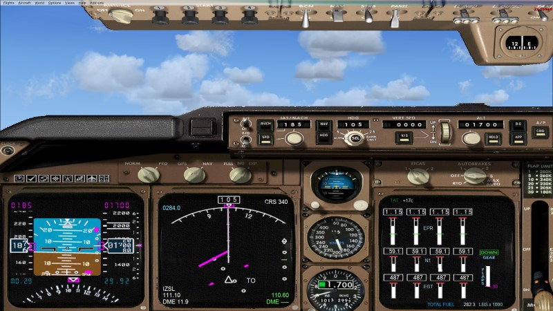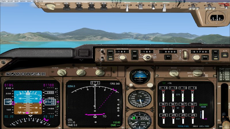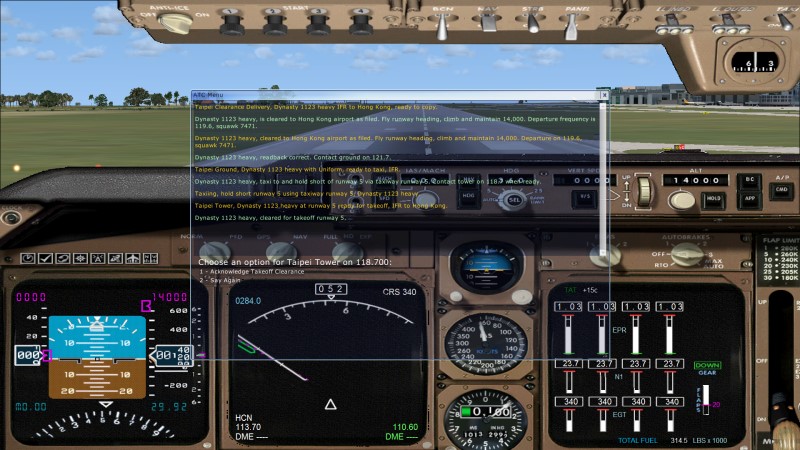 一開始進畫面後我們直接在Runway 05上面準備起飛,不過請打開ATC跟航管對話完才可以起飛,不然你的IFR會被取消掉,對話順序就是Request IFR clearance -> Request Taxi -> Request takeoff clearance,若要接近真實狀況,起飛前可將Flaps設為20度,不過內建機不設也沒差,物理現象不明顯且系統不會警告。如果用PMDG 747來玩Flaps不放在正確位置會警告聲大作。 |