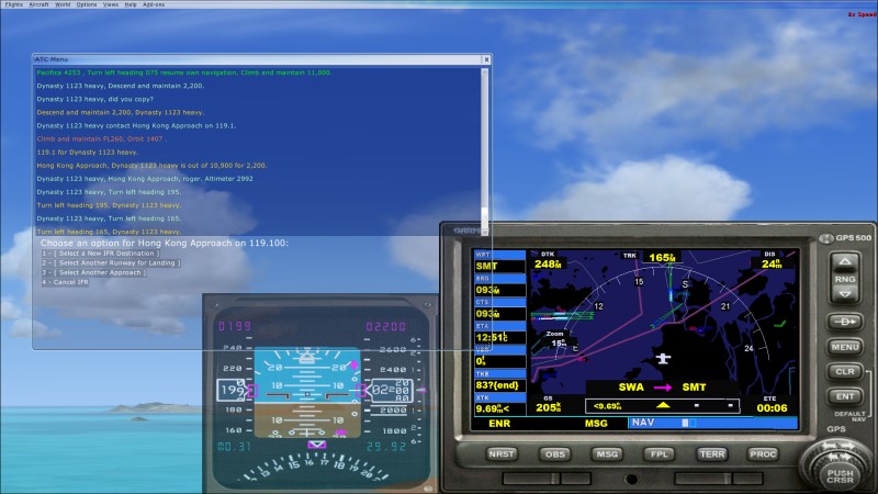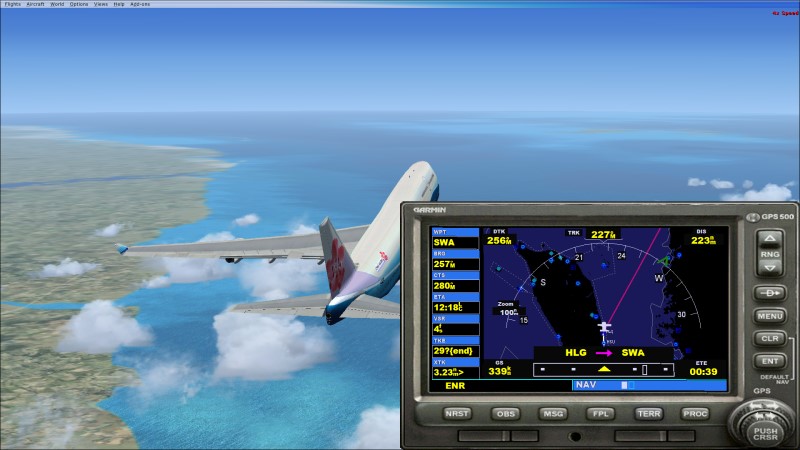 接下來一路依照航管指示飛行,可以Ctrl+3秀出GPS來看看目前的位置。 |