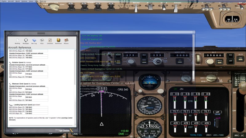 打開Kneeboard(儀表板上一個打勾的按鈕)看一下降落參考速度,滿載及Flaps 30度時落地速度為181 KIAS(指示空速)。 |