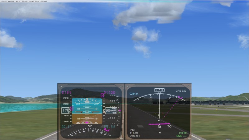 在Final approach時進場台會通知ILS approach,這時把A/P旁的APP按下 (Approach),當攔截到Localizer定位台訊號時就會開始自動導航降落。 |