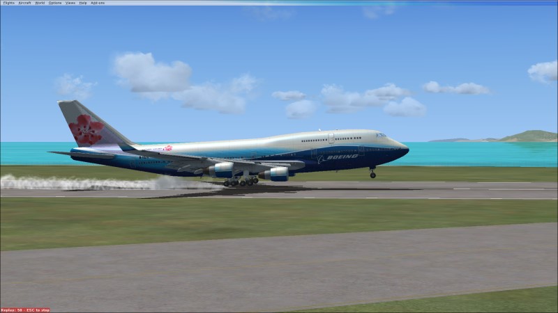 落地前解除自動駕駛及油門把機頭往上抬升,但切勿拉太多造成失速直接重落地。P.S.主要是注意下沉率sink rate,747離地面50呎時要開始收油門至IDLE,及平飄flare拉機頭減低sink rate,所謂的重落地也是看觸地那一刻的sink rate的大小來決定。如果在落地前下沉率過高就會聽到警告系統一直喊sink rate! sink rate! pull up! pull up!,就是跟你講這樣下沉率太高落地會墜毀,請把機頭拉高減輕下沉率。 而內建機sink rate在畫面左下角的LCD裡,在LCD右邊有一個紅點是指向0,綠點就是指向目前sink rate,刻度是1000英呎/分,目前下沉率將近500呎。但是也不要把機頭拉太高讓下沉率太低,這樣反而會用太長跑道距離才能觸地,只要在500呎/分以內應該都是很輕柔的落地垂直速度。 補充:台灣民航局頒布的安全落地標準是觸地時小於每分鐘1000英呎sink rate |